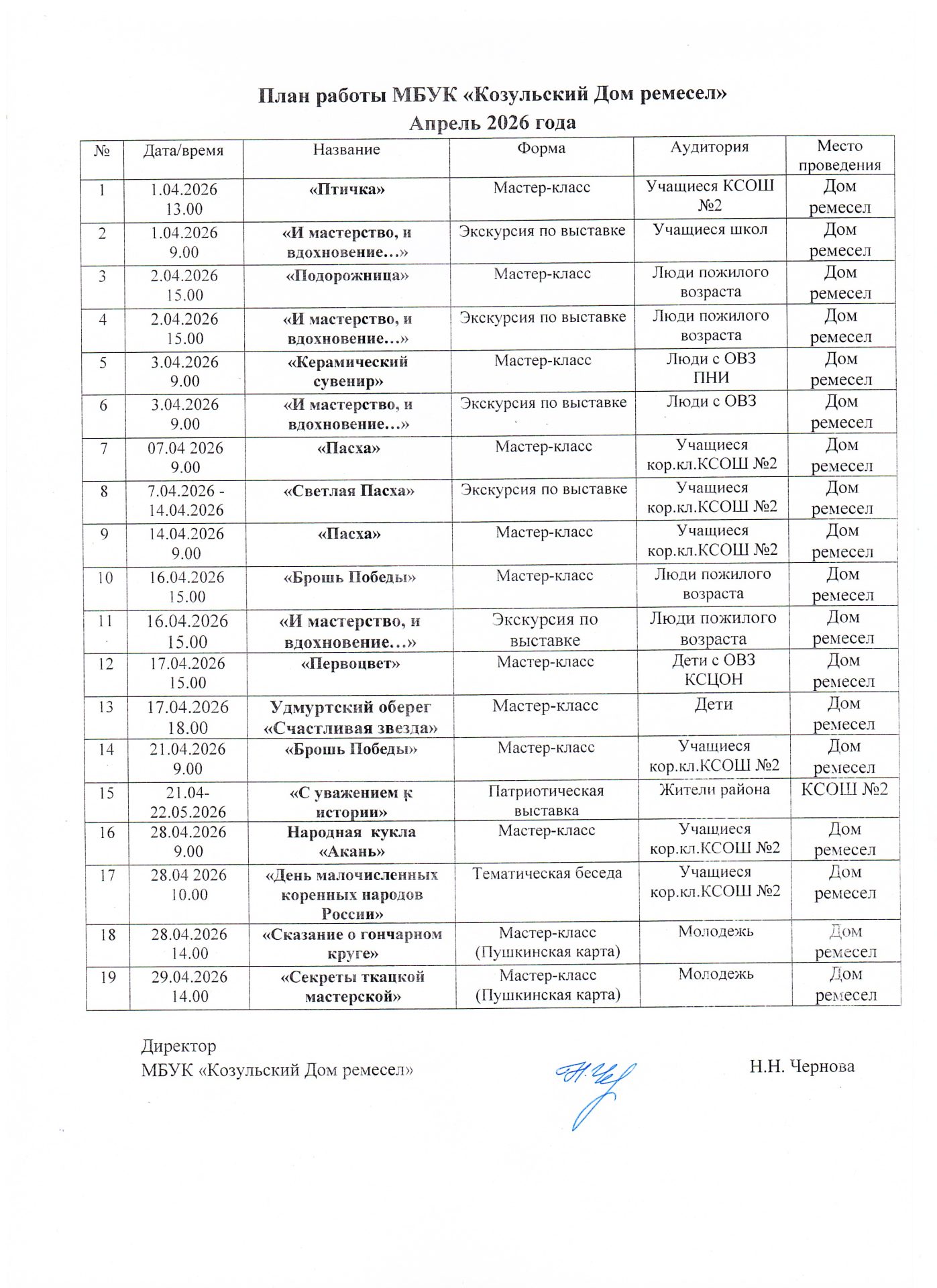 План работы Апрель 2026г.